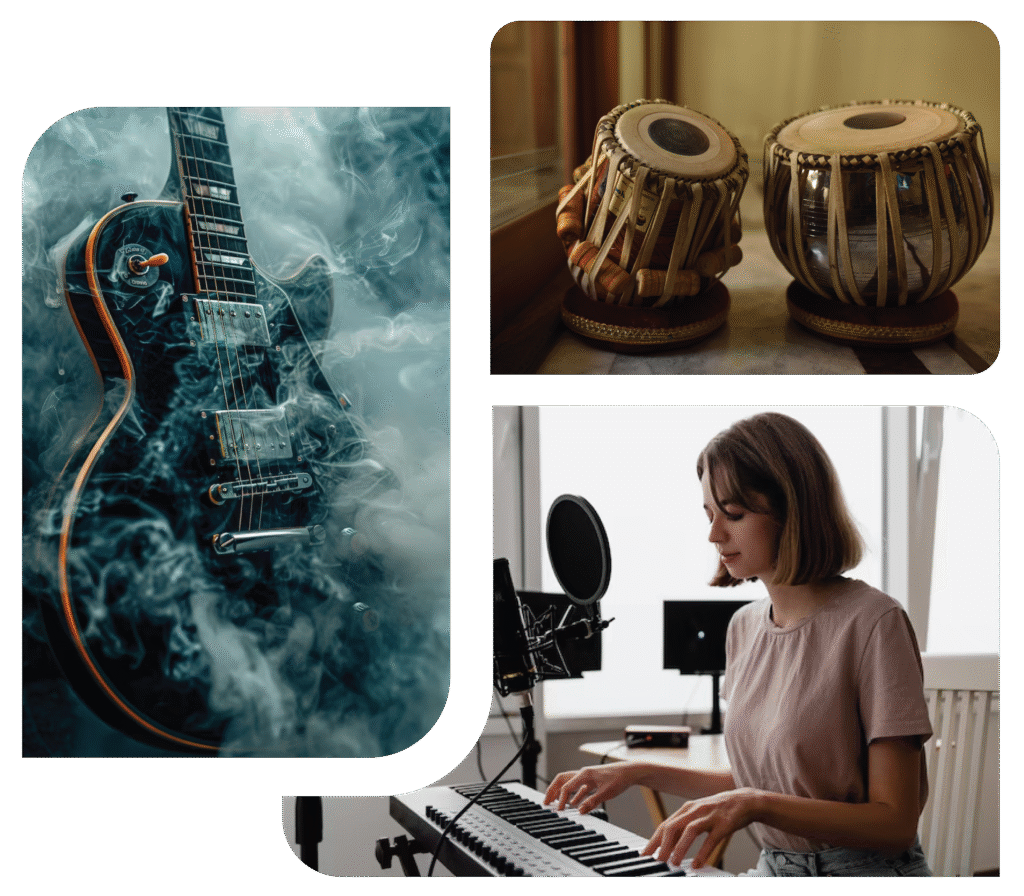 Unlock your musical journey with Danika Music! From guitar and tabla to piano, harmonium, vocal training, and music production – everything is taught online. Learn at your own pace with live sessions, recorded videos, and expert teachers guiding you step by step.